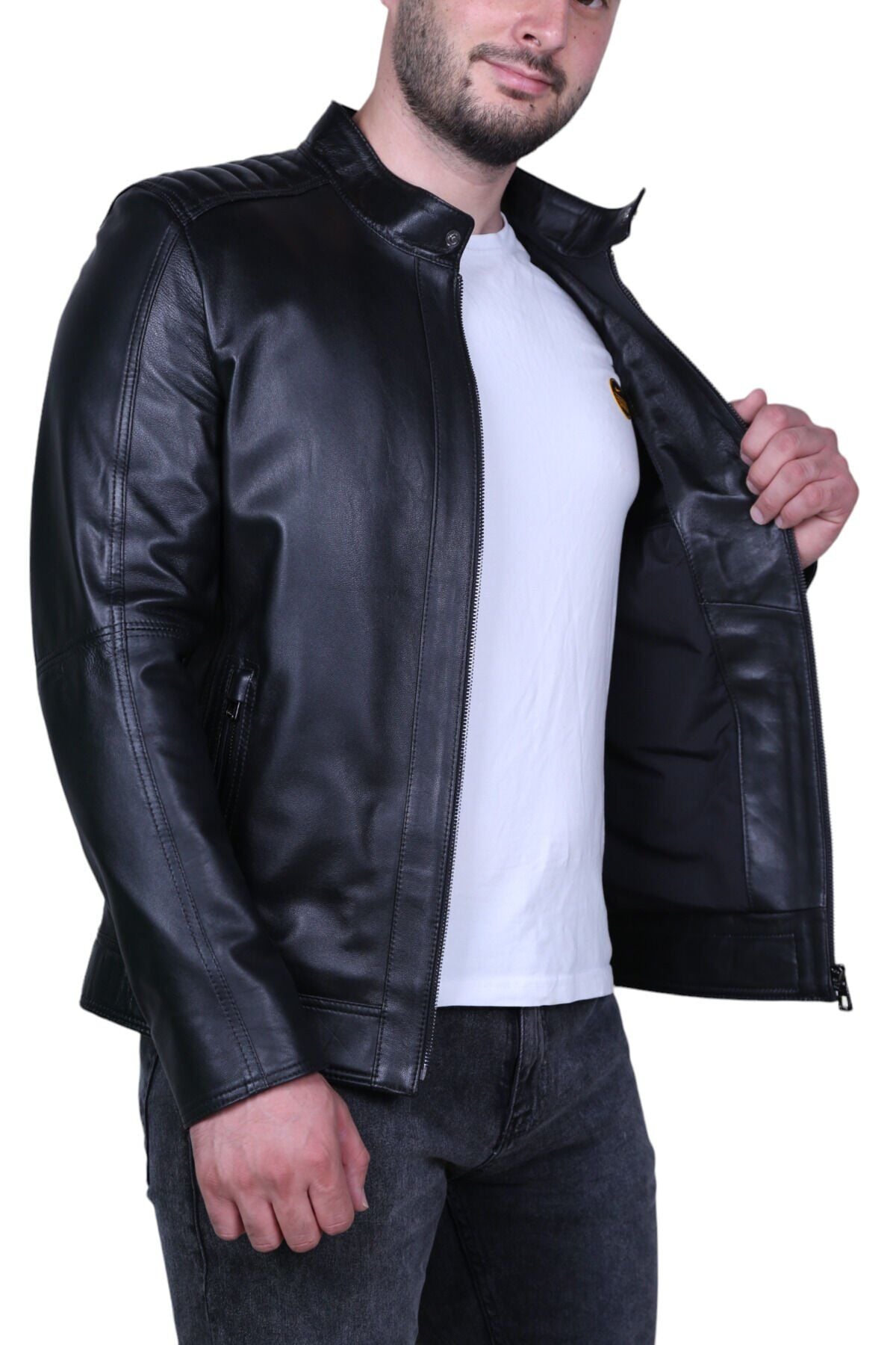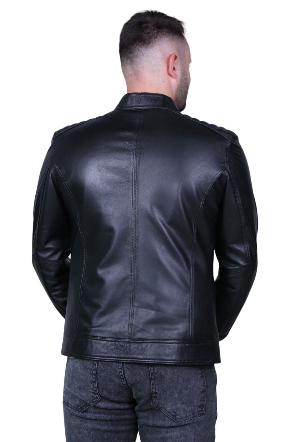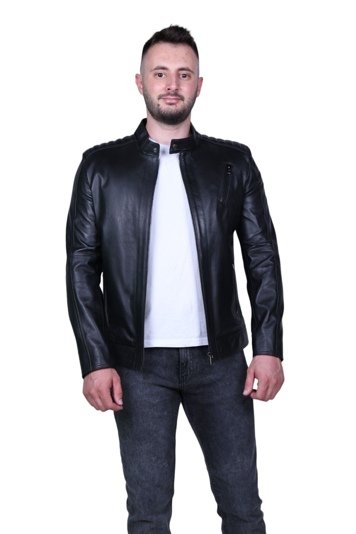 Eylül 062 Siyah Erkek Hakiki Deri Mont