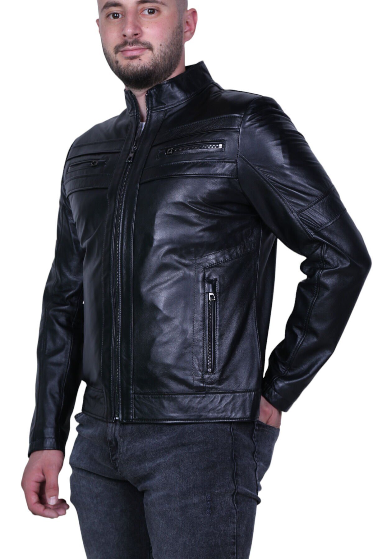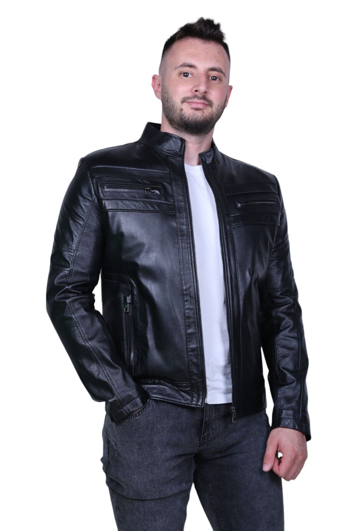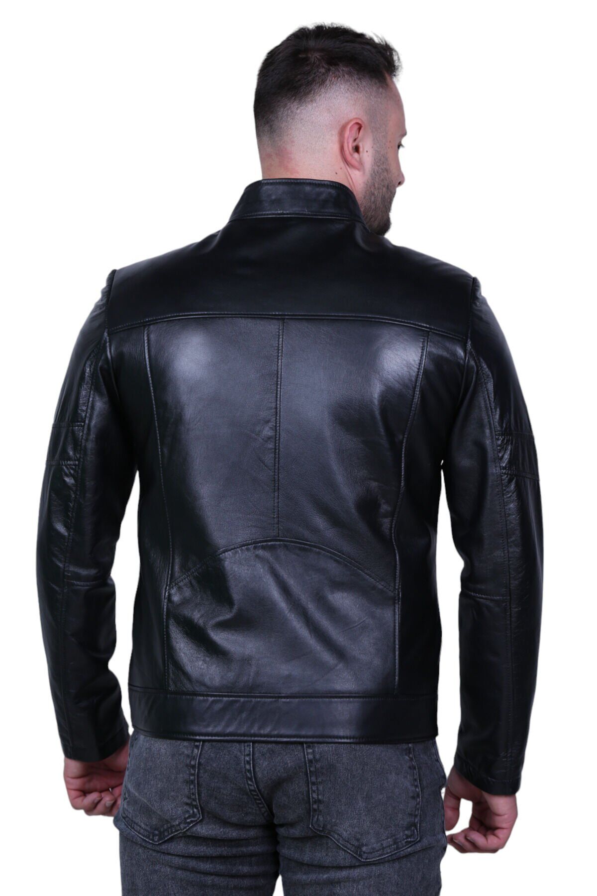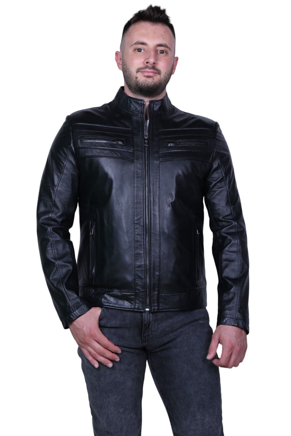 Eylül 3076 Siyah Hakiki Deri Erkek Mont