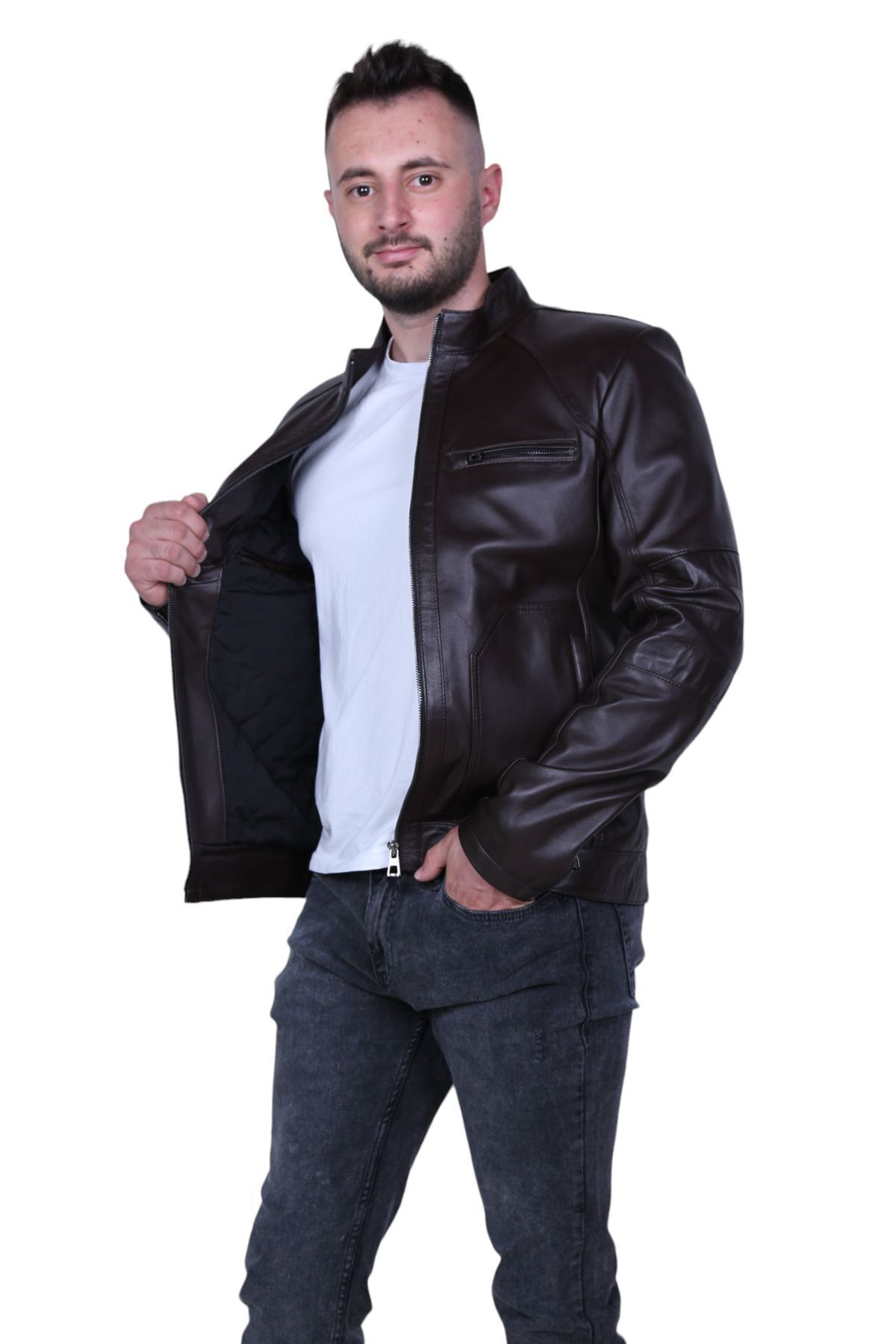 Hakim yaka tasarımı ile klasik ve şık bir görünüm sunar; Regular kalıp, rahat bir kullanım sağlar ve vücut hatlarınıza uyum sağlar; Hakiki deri materyali, dayanıklılığı ve kaliteyi ön plana çıkarır; Astarlı yapısı ile konforlu bir iç yapı sunarken, soğuk havalarda ekstra sıcaklık sağlar; Düz deseni sayesinde zamansız bir stil oluşturur ve farklı kombinlerle kolayca uyum sağlar; Standart kol tipi, hareket özgürlüğünüzü kısıtlamadan rahat bir kullanım sunar; Yıkama talimatlarına uygun bakım ile montunuzun uzun ömürlü olmasını sağlar; Standart boy seçeneğiyle her bedene uygunluk gösterir ve şık bir siluet çizer;
