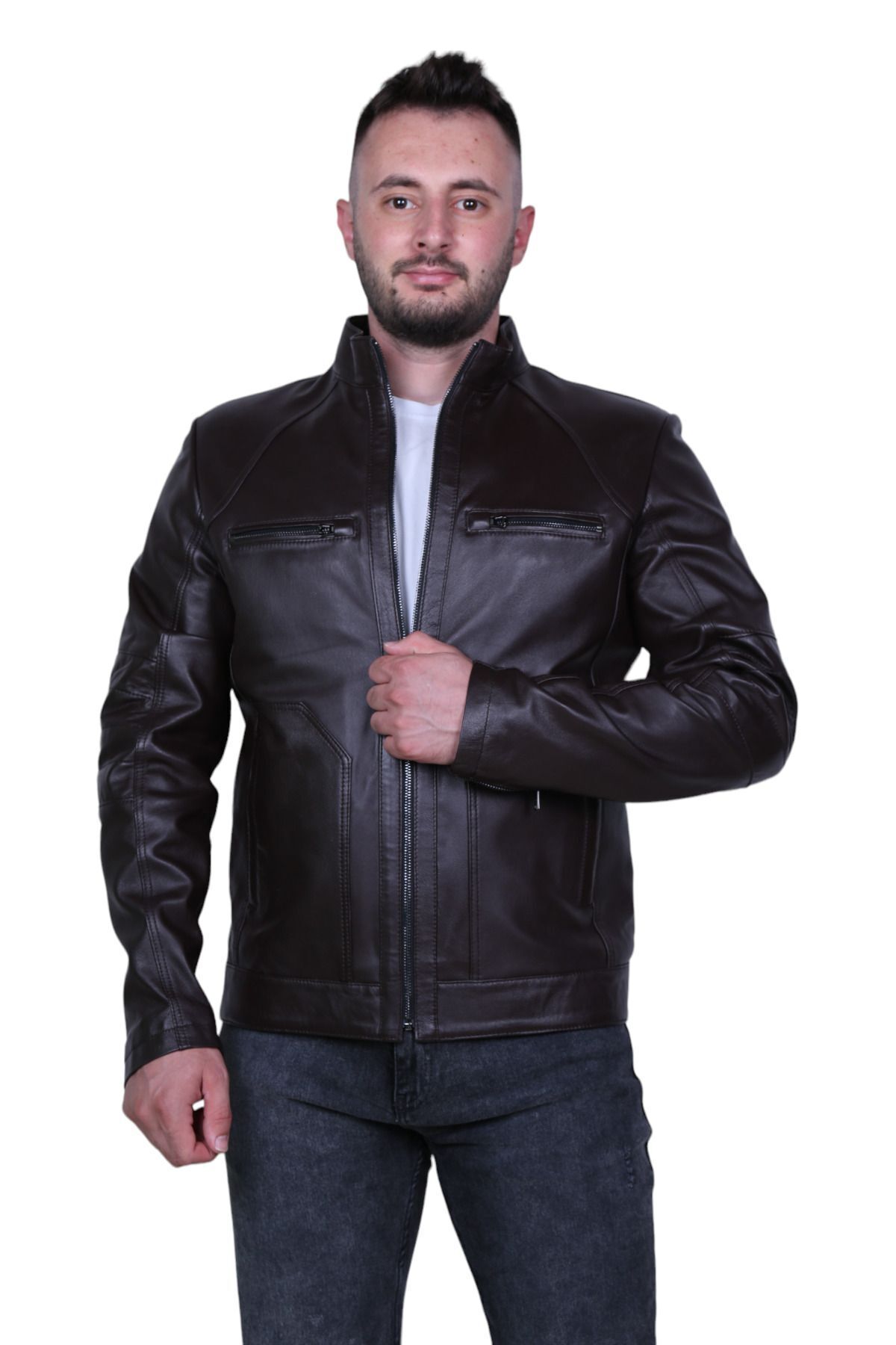 Eylül 4029 Çay Rengi Erkek Hakiki Deri Mont
