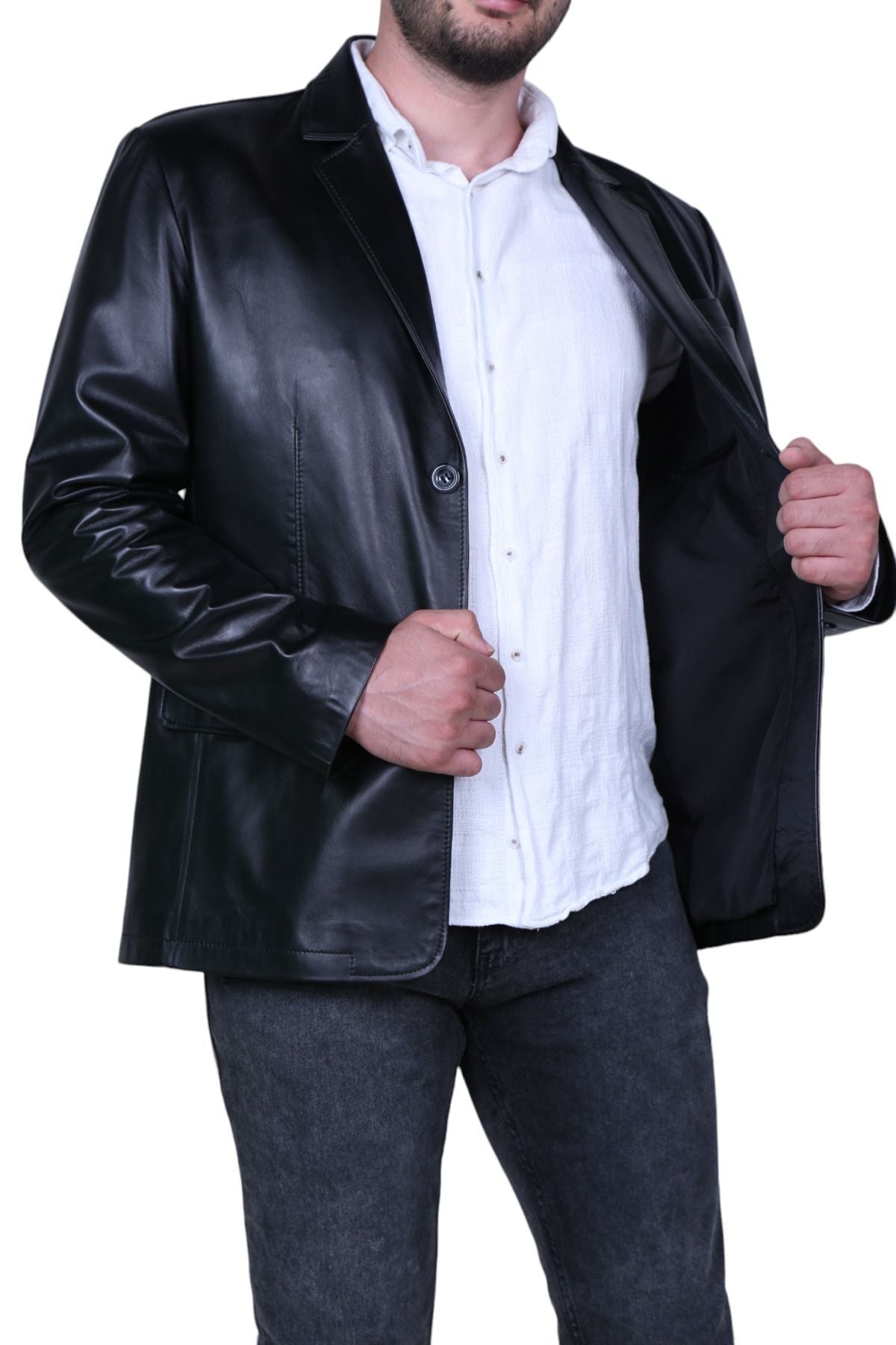 Eylül Bleyzer Siyah Erkek Deri Ceket