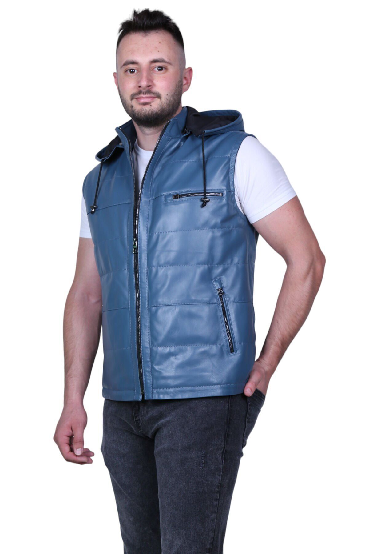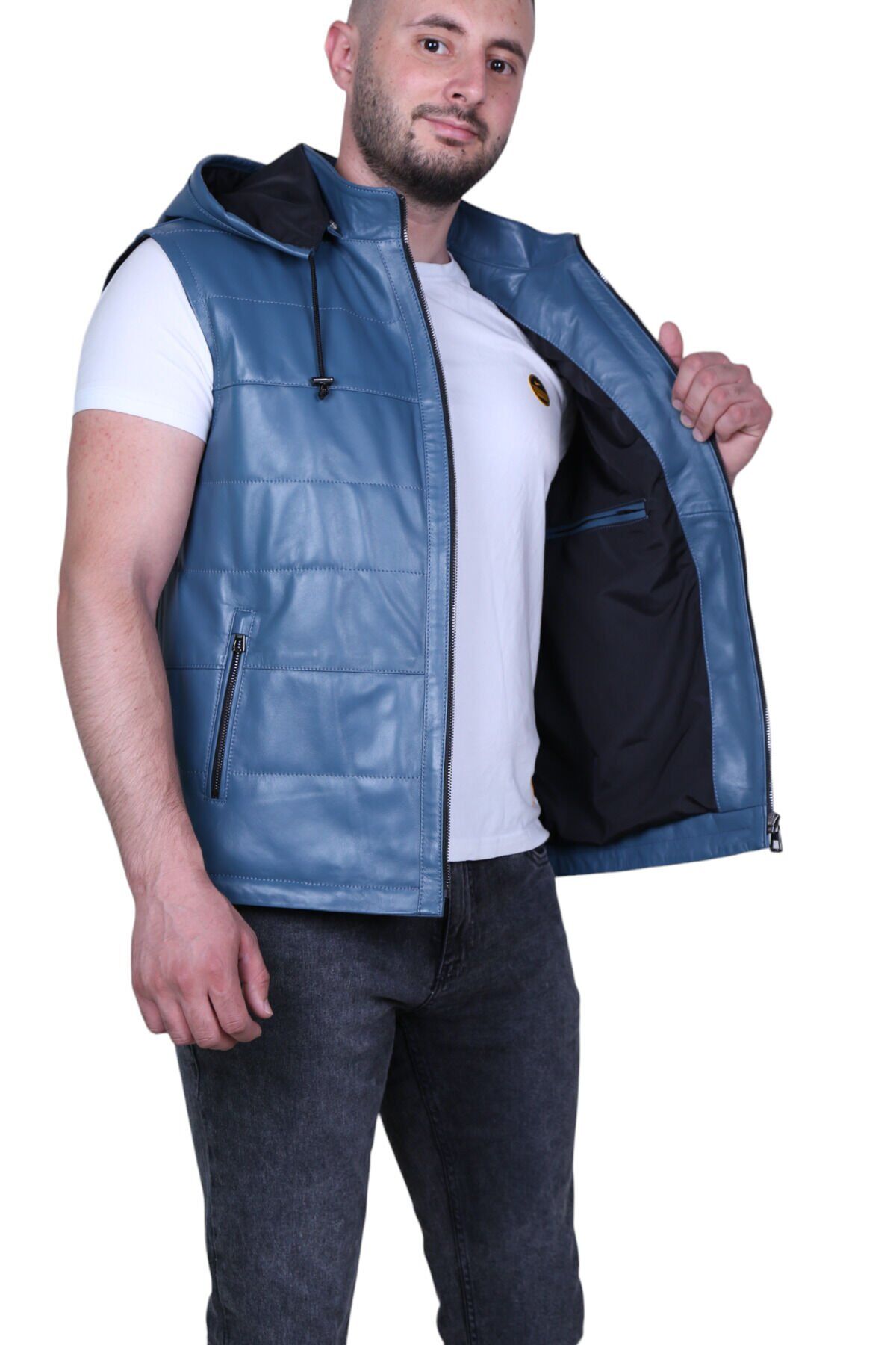 Eylül Hakiki Deri Erkek Şişme Yelek