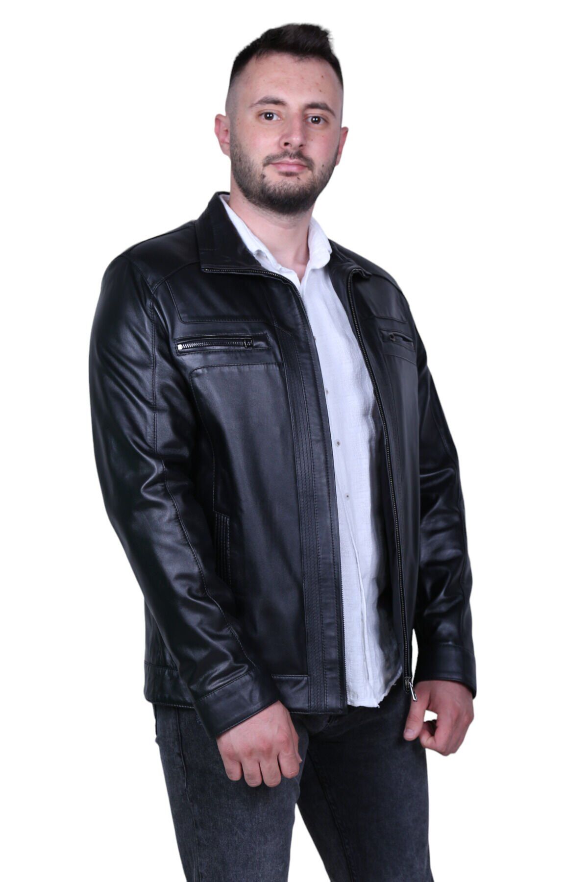Eylül Oğuzhan Siyah Hakiki Deri Erkek Mont