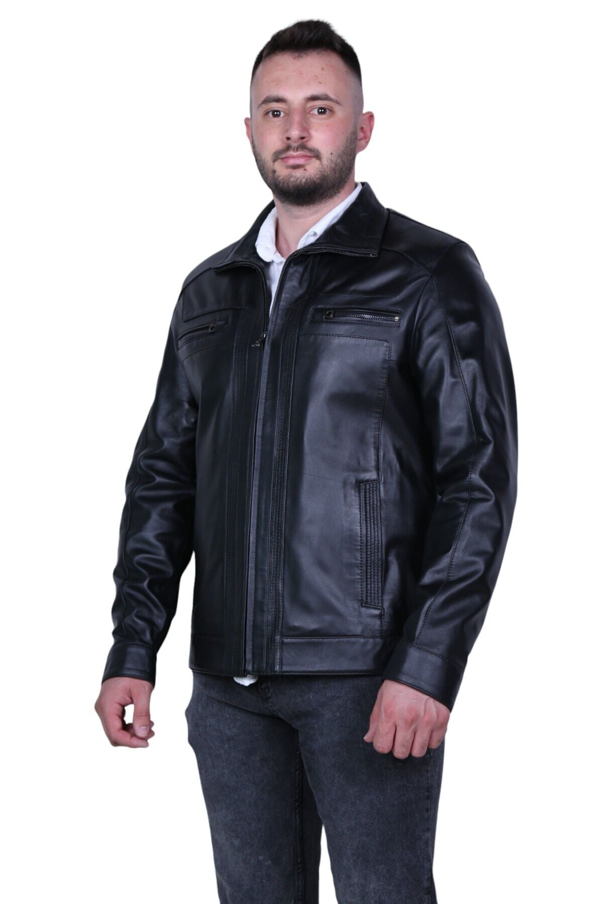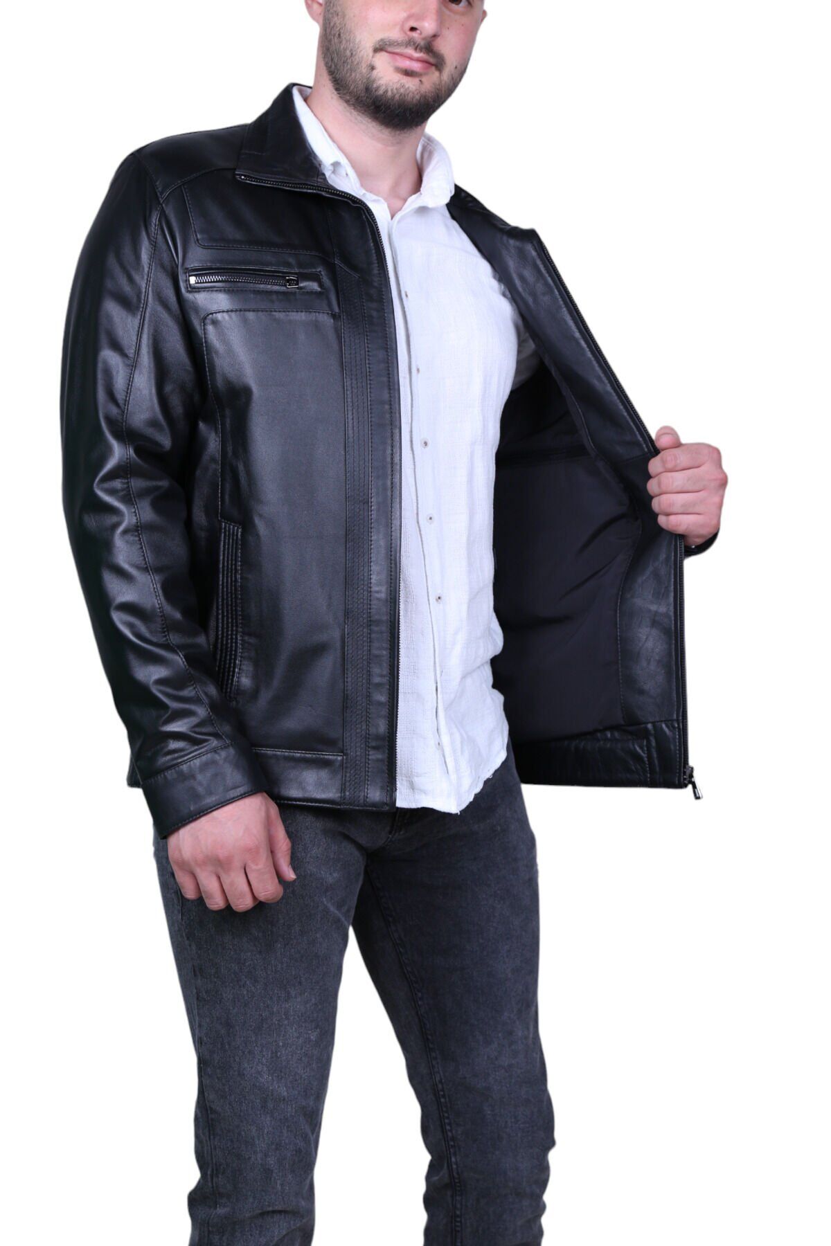 - Klasik ve zamansız tasarımıyla her ortamda şıklığınızı koruyun; düz desenli siyah renk seçeneğiyle her kombinle uyum sağlar; - İçinizi sıcak tutacak astarlı yapısı sayesinde soğuk havalarda konforunuzdan ödün vermezsiniz; - Kolay bakım imkanı sunan yıkama talimatları ile montunuzu uzun süre ilk günkü gibi koruyabilirsiniz; - Regular kalıp, rahat bir kullanım sağlarken vücut hatlarınıza uyum sağlayarak şık bir görünüm sunar; - Standart kol tipi ile günlük hareket özgürlüğünüzü kısıtlamaz ve rahat bir kullanım sunar; - Hakiki deri kumaşı, dayanıklılığı ve kalitesiyle ön plana çıkarken, materyalinin doğal dokusuyla dikkat çeker; - Standart boy uzunluğu, farklı vücut tiplerine uygunluk gösterir ve her bedene hitap eder; - Gömlek yaka detayı ile modern ve sofistike bir stil oluştururken aynı zamanda resmiyetten uzak durur;